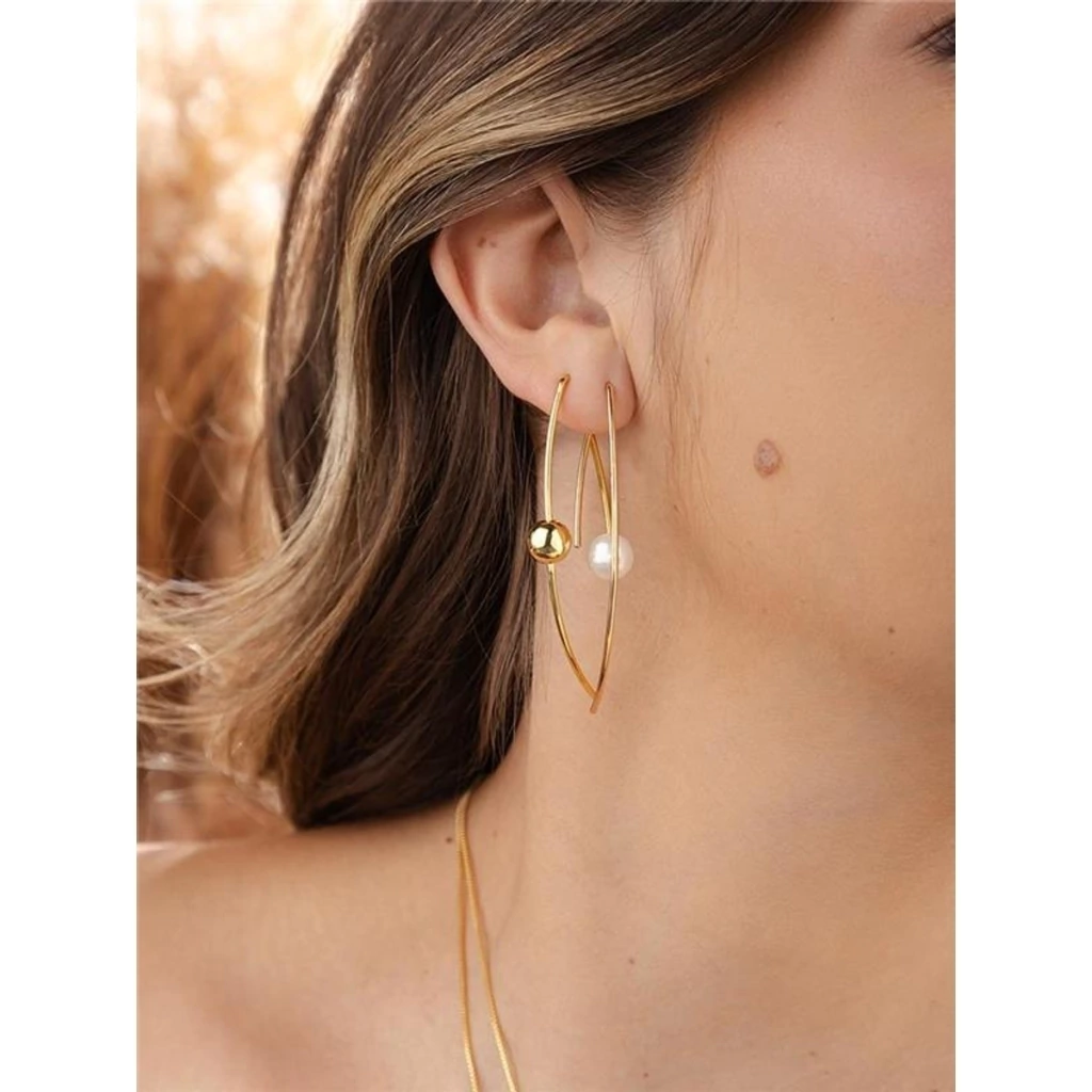Brinco Meia Argola com Pérola Banhada a Ouro 18k ✨
